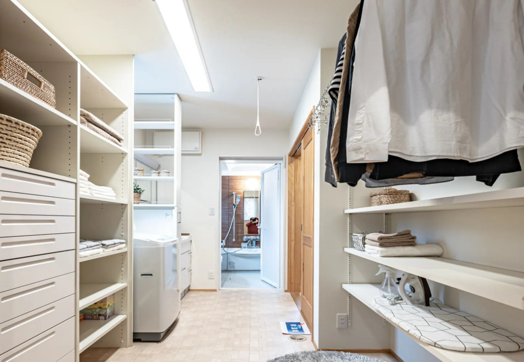 ランドリーに隣接した3畳とゆとりあるクローゼット
